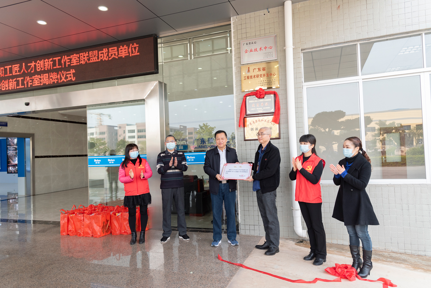 廣東省總工會(huì)授予廣東省勞動(dòng)模范王華的勞模創(chuàng)新工作室為粵港澳大灣區(qū)勞模和工匠人才創(chuàng)新工作室聯(lián)盟成員單位,德慶縣總工會(huì)班子領(lǐng)導(dǎo)一行于1月21日到廣東肇慶德通有限公司舉行揭牌儀式。